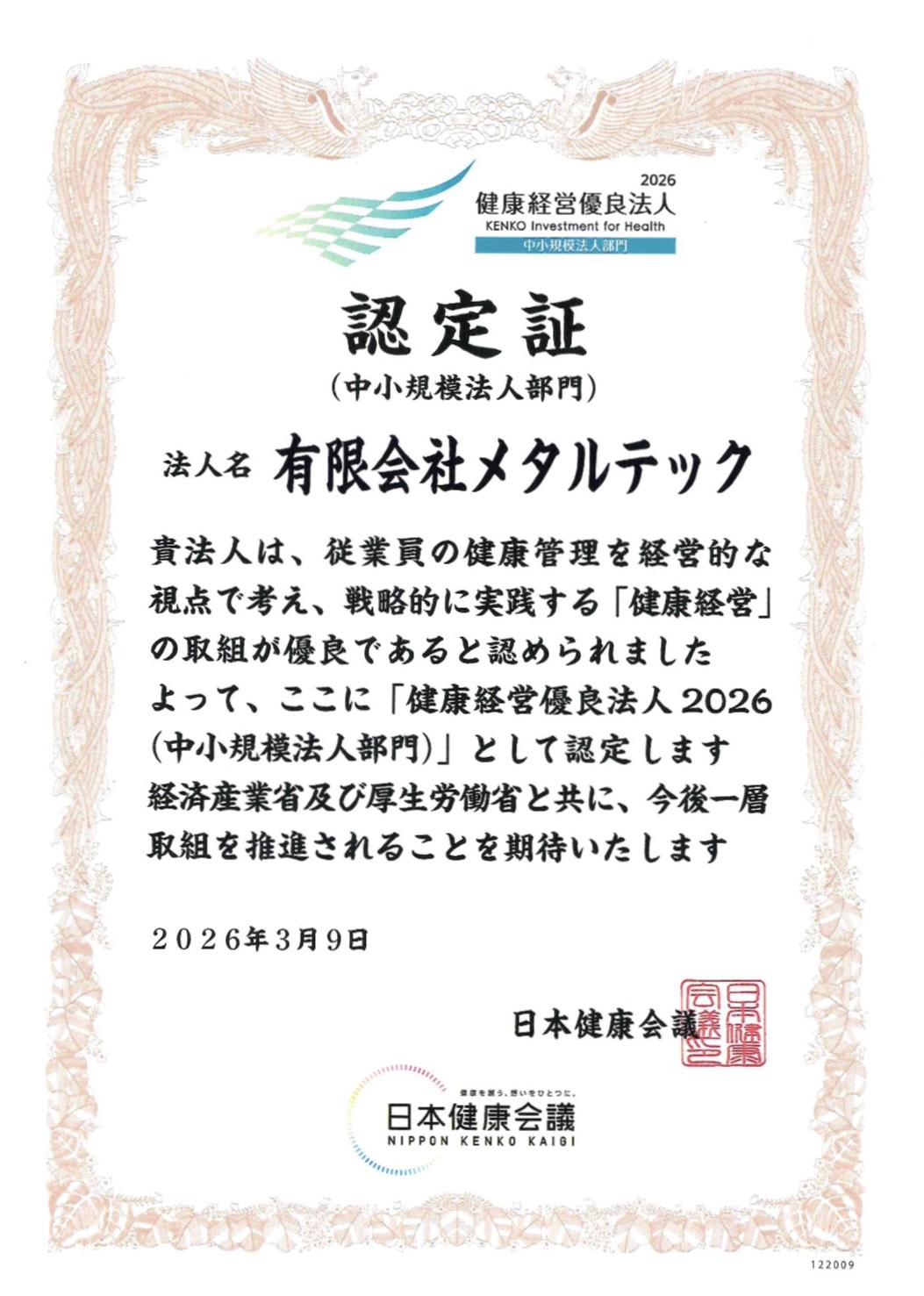 ※「健康経営優良法人認定制度」は、従業員の健康増進や職場環境の改善に積極的に取り組む企業を評価・認定する制度です。